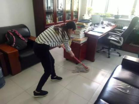 本次活动由班委牵头,指定负责人具体负责,在经过充分准备,带齐所需工具后,参加此次活动的同学们将办公室地面、桌椅、书架等各个位置进行了认真细致的清扫和擦洗,并且反复排查卫生死角,力求给院长一个干净、卫生、舒适的工作生活环境。