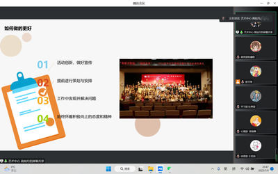团委书记郭琦老师对本学期学生会各部门工作进行总结。郭琦老师首先对本年度学生会的工作进行了肯定,重点总结了学生会本学期的工作情况,列举了学生会举办的各项活动,并提出了改进目标和未来工作的规划和展望。她希望后续工作中继续保持好的优点、不断创新,改正不足之处;也希望各部门负责人更好地发挥带头作用,各部门干事不断提升自己,让必发9988集团团委学生会更好地沟通学校与同学。
