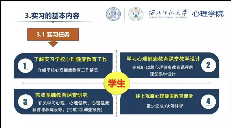 这次实习经历是值得珍藏的,这次实习中所收获的知识经验也对于我未来的工作生活有莫大帮助!我会带着这次经历继续在成为一名优秀的心理健康老师的道路上勇敢前行,但行前路,无问西东。