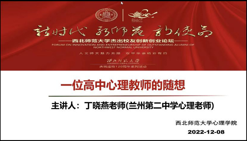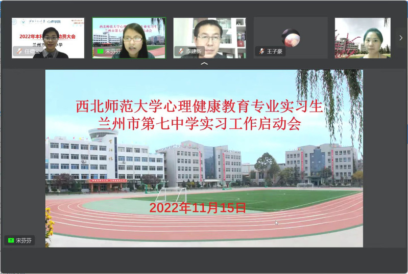 在正式实习开始之前,兰州市第七中学在宋芬芬老师的主持下也举行了实习工作启动会。领导和老师们表达了对师大学子的肯定,也对具体实习工作提出了一些要求。在具体的实习中,我们通过钉钉直播参与在线听课,通过观看老师们精彩的课堂,我们深刻体会到将所学习到的具体知识和技术在课堂中进行运用是非常困难的,是需要许多积累的。在与同学们进行互动的过程中,我们也体会到心理健康老师的真诚与包容。