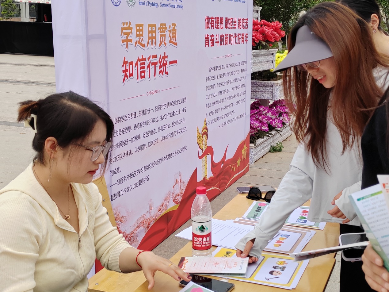 在习近平新时代中国特色社会主义思想学习站点,同学们通过答题领悟习近平总书记的重要讲话精神以及习近平总书记在党的二十大报告中对青年的寄语,在答题中领会习近平新时代中国特色社会主义思想,感悟领袖对青年的关爱;民族团结进步教育站点将答题与打卡拍照相结合,同学们通过学习了解民族团结之根、民族团结之本,体会不同的民族文化,认识到“一部中国史,就是一部各民族交融汇聚成多元一体中华民族的历史,就是各民族共同缔造、发展、巩固统一的伟大祖国的历史”;诚信教育站点的签名墙吸引了同学们驻足打卡,“我为诚信做代言”以及精心设计的诚信知识问答,让同学们真正感悟了习近平总书记“诚信精神是社会主义关键价值体系的主要内容,是社会主义优秀文化的主要基石,对人格的塑造、品德的培养有决定作用,和民族自强,社会进步也息息相关”的精神内核,同学们纷纷拿起笔在签名墙上书写下自己的承诺;学院将自身专业特色融入心理健康教育站点的活动中,在答题打卡的同时开展“爱自己的100条理由”征集活动,不仅学习宣传心理健康知识,促进大学生全面发展,更时刻提醒我们关爱自己、悦纳自己,成为自己身心健康的第一责任人。