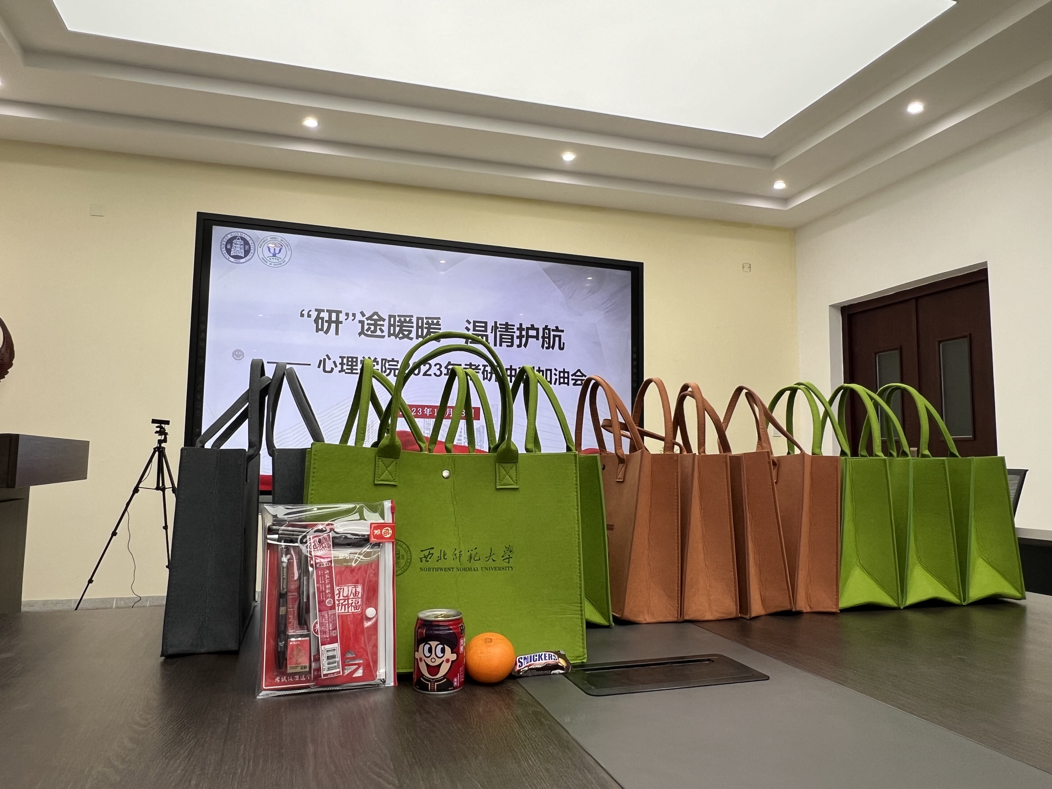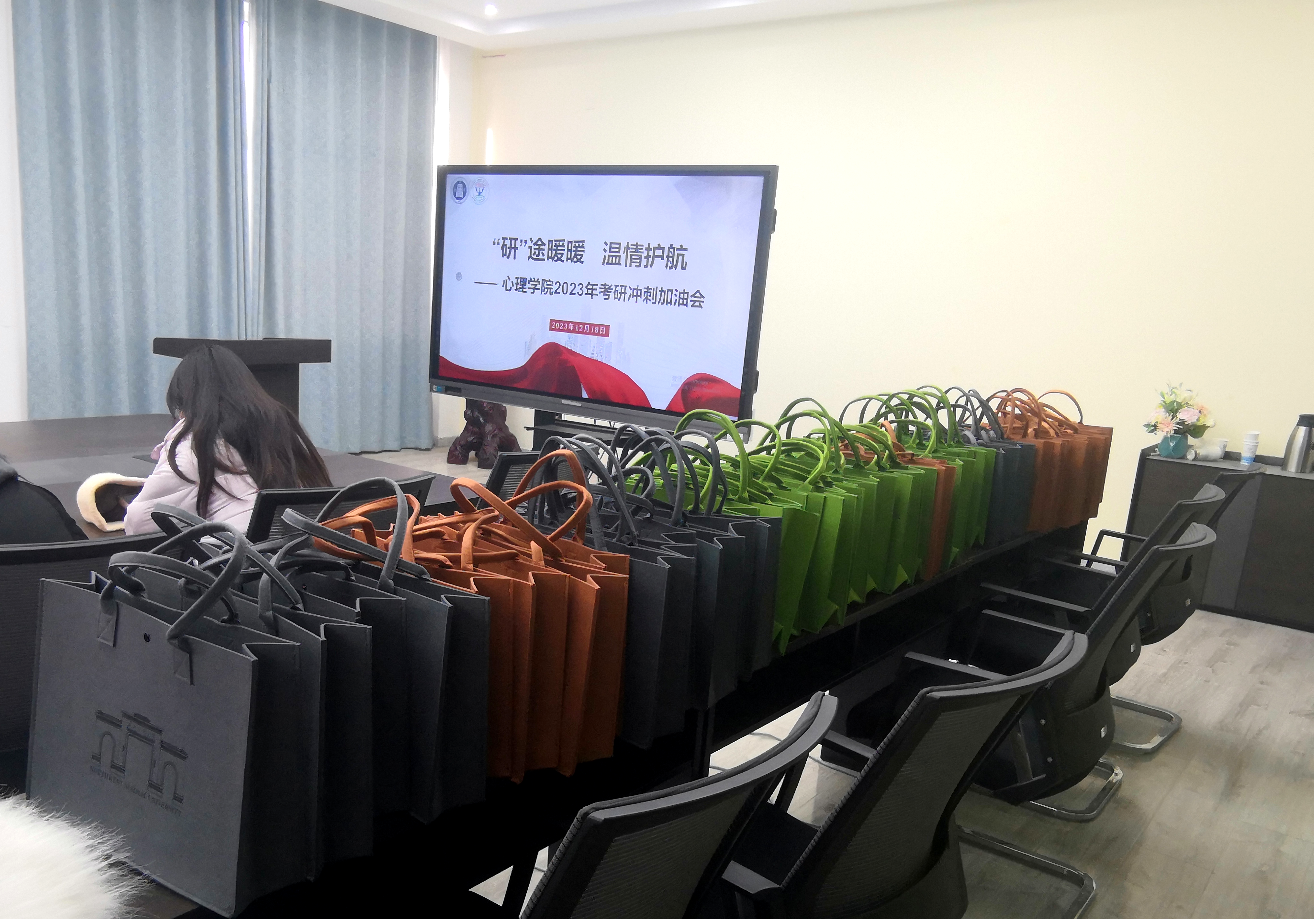 一件件充满祝福的礼品,从开始的搬运、分拆,到最后的分类、装袋,楼外的天气是寒冷的,而特教楼401会议室的气氛是火热的。在各位老师的精心准备下,一份份“考研加油包”新鲜出炉~