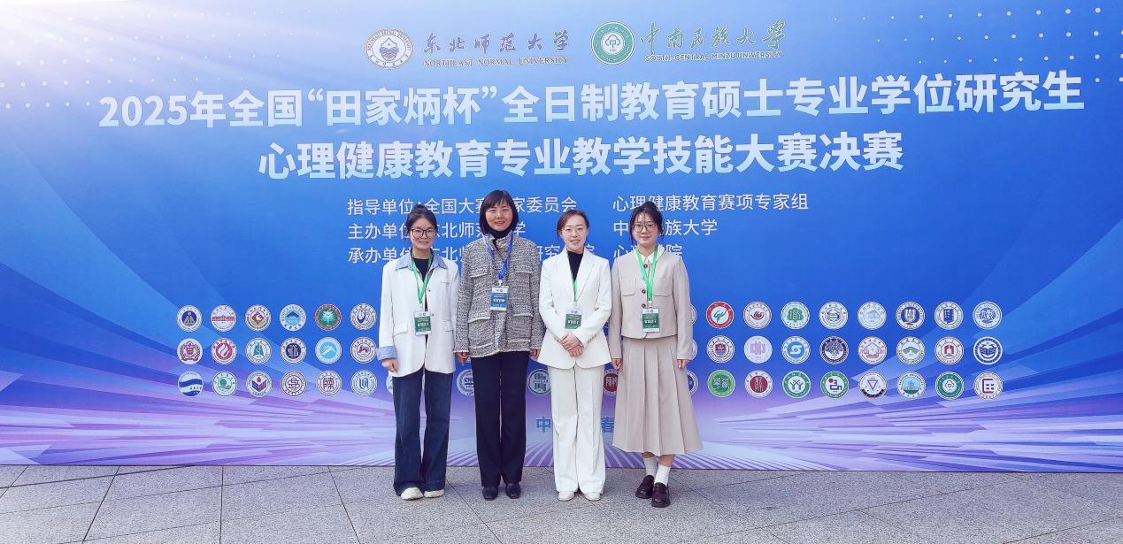 10月的长春秋高气爽,2025年全国“田家炳杯”全日制教育硕士专业学位研究生心理健康专业教学技能大赛决赛闭幕式在东北师范大学举行。本次大赛是国内心理健康教育领域层次最高、专业性最强、规模最大、影响最广的全国性赛事,吸引了众多高校全日制教育硕士参赛,为心理健康教育人才培养搭建了高质量交流平台。我院周爱保教授作为赛事指导组成员,心理健康教育学位点负责人朱雅雯副教授作为带队教师,与3名2023级心理健康教育专业硕士参加了此届“田家炳杯”教学技能大赛。