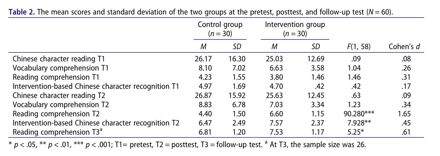 1-2年级的儿童进行了为期8周的兄弟姊妹共读干预,并与其年龄即阅读水平匹配的30名儿童进行对比。研究结果显示在干预立即结束后,干预组儿童在基于干预材料字词识别以及干预材料之外的阅读理解任务上都显著优于对照组儿童;最近的结果显示即使在半年后干预组儿童在基于干预材料字词识别上与对照组相比已没有显著优势,但其在干预材料之外的阅读理解任务上仍然显著优于对照组儿童。这些结果表明基于家庭的兄弟姊妹共读活动可以有效促进乡村儿童阅读能力的提升。基于该研究的论文“The Effect of a Sibling Shared Reading Intervention on the Reading Development of Early School-Aged Children in Rural China”发表在了教育与教学研究(EDUCATION & EDUCATIONAL RESEARCH)领域的SSCI一区期刊《Early Education and Development》上。